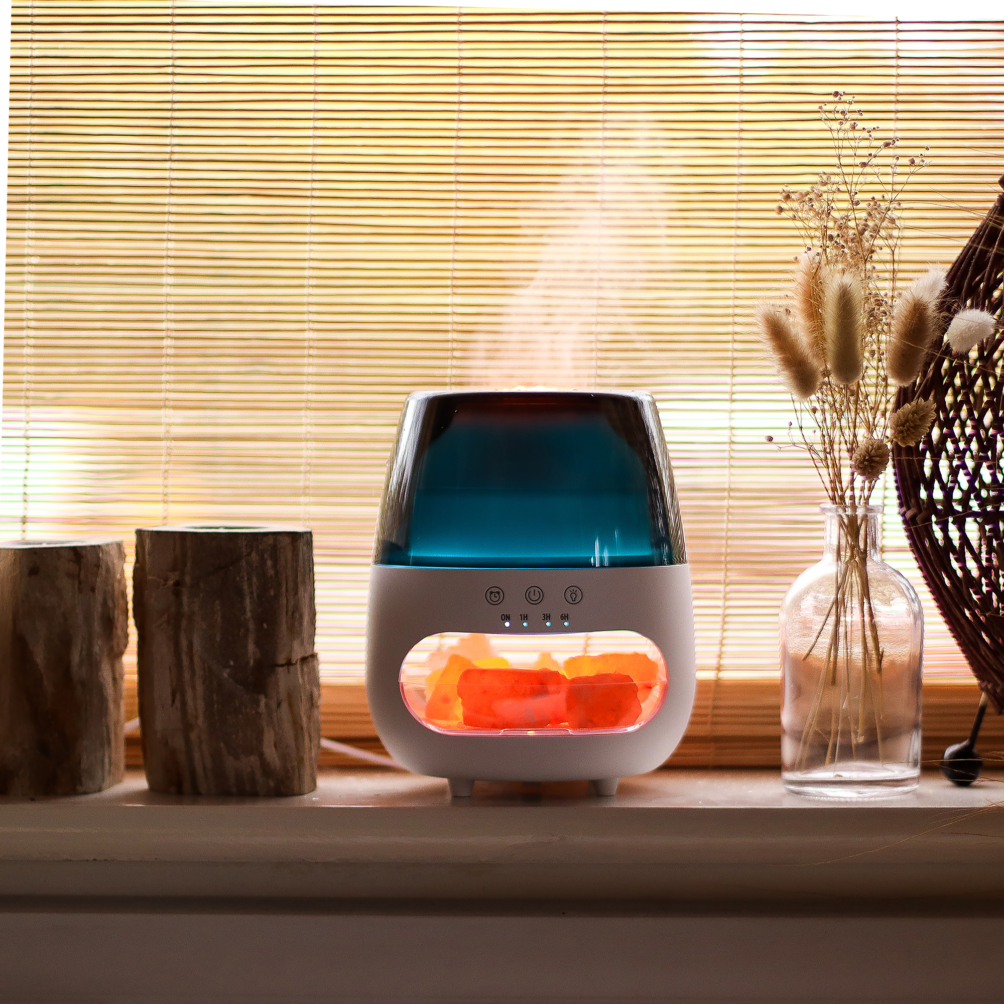 Difuzorul de Aromă cu Efect de Flacără din Piatră de Sare îmbină designul elegant cu tehnologia modernă de wellness, fiind prevăzut cu sare de Himalaya care îmbunătățește experiența de aromaterapie datorită proprietăților sale naturale de purificare a aerului.