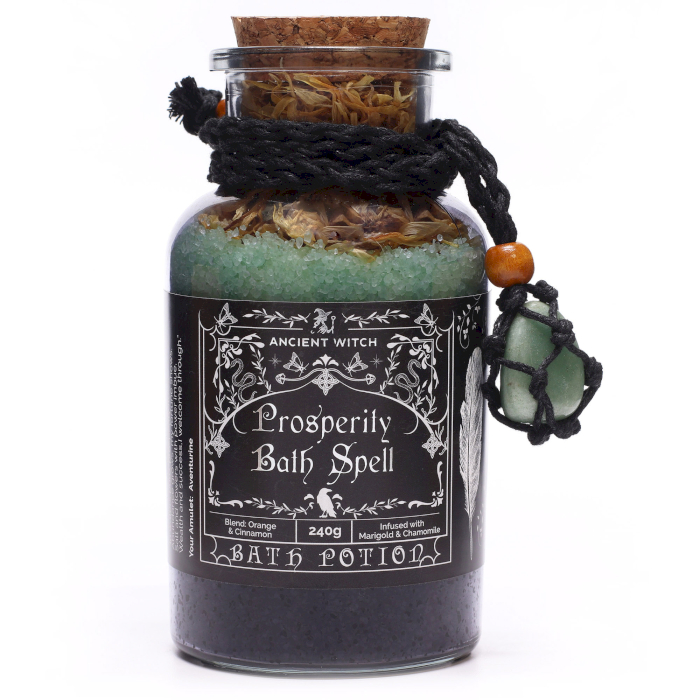 Invitați-vă clienții să primească abundența și energia pozitivă în viața lor cu Sarea de Baie a Vrăjitoarei Antice pentru Prosperitate, un amestec ritualic strălucitor inspirat din vrăjile tradiționale de prosperitate.