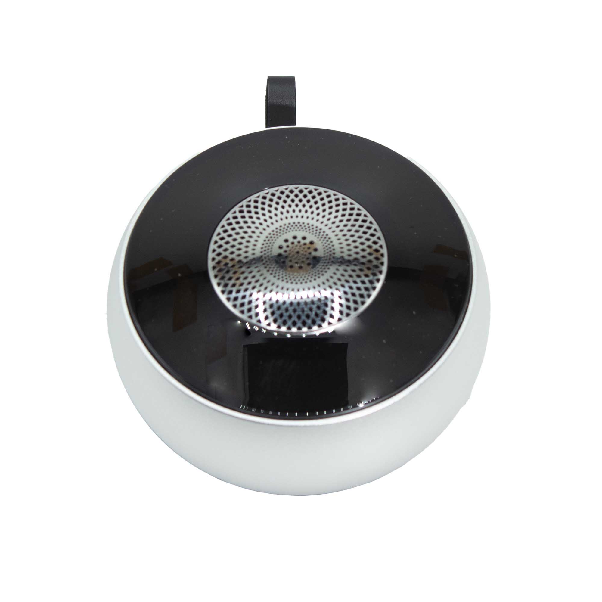 Prevăzută cu un inel de agățare fix, boxa poate fi transportată, suspendată sau integrată în decor fără a fi nevoie de accesorii suplimentare. Tonul neutru argintiu se potrivește în mod deosebit interioarelor minimaliste, dormitoarelor și spațiilor de relaxare.