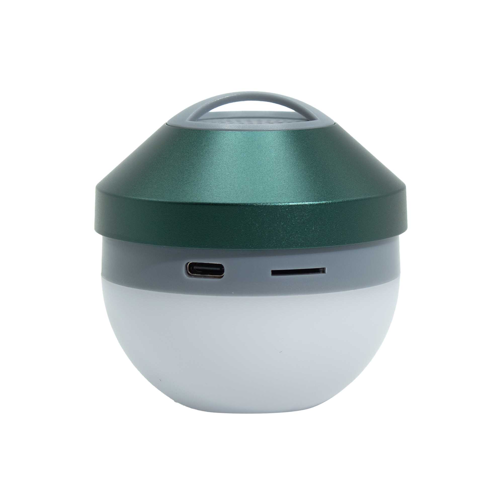 Lampa Suspendabilă pentru Camping cu Mini Boxă – Verde combină sunetul și iluminarea într-un format compact, conceput pentru utilizare flexibilă atât în interior, cât și în exterior. Este potrivită pentru grădini, terase, camping sau spații exterioare temporare.