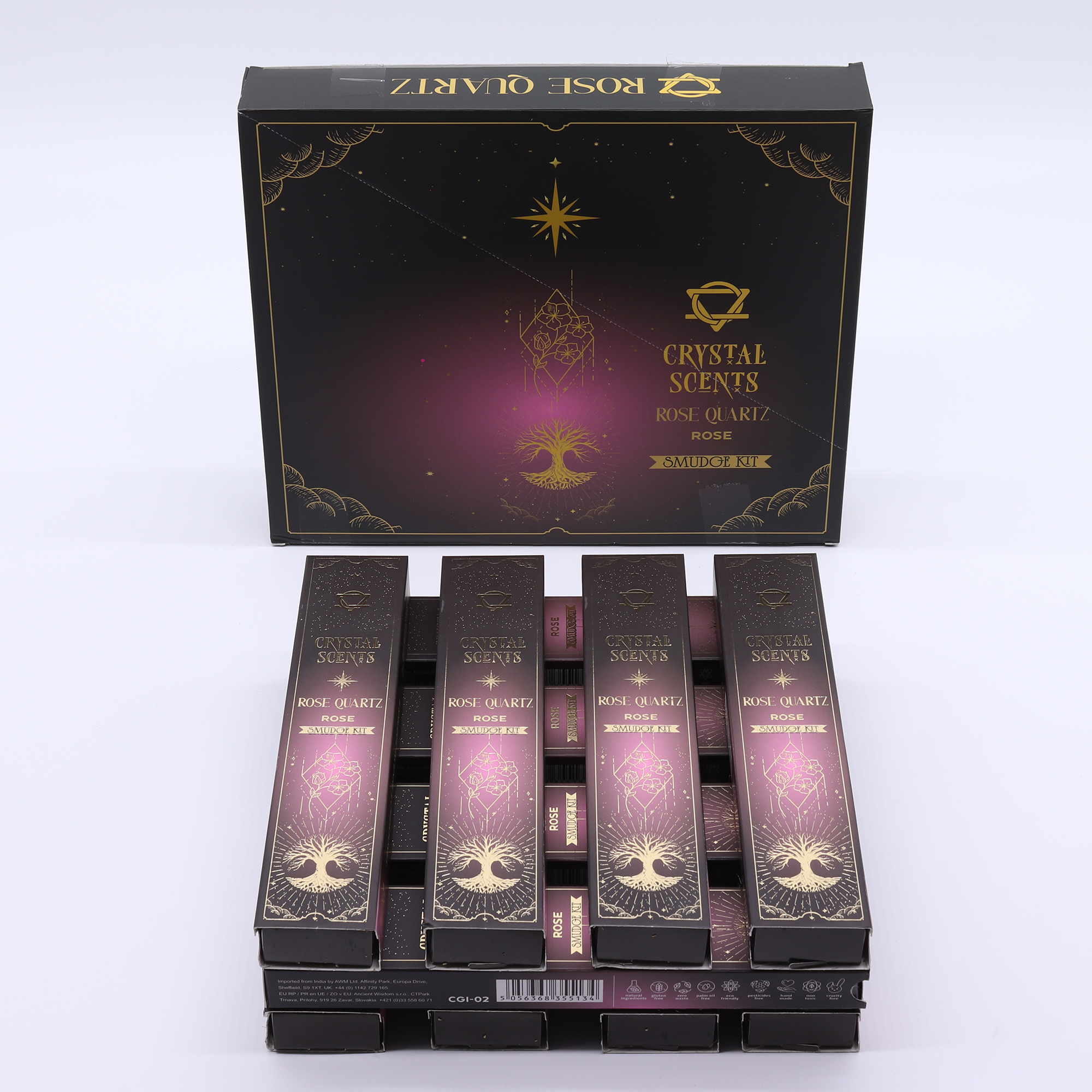 Fiecare pachet conține 10 bețișoare parfumate realizate manual și un cristal autentic de Cuarț Roz, oferind comercianților un produs cu valoare clară pentru cadouri și un atractiv general foarte larg, în special pentru clienții orientați spre wellness. Combinația este ideală pentru display-uri dedicate îngrijirii de sine, relaxării sau bunăstării emoționale.