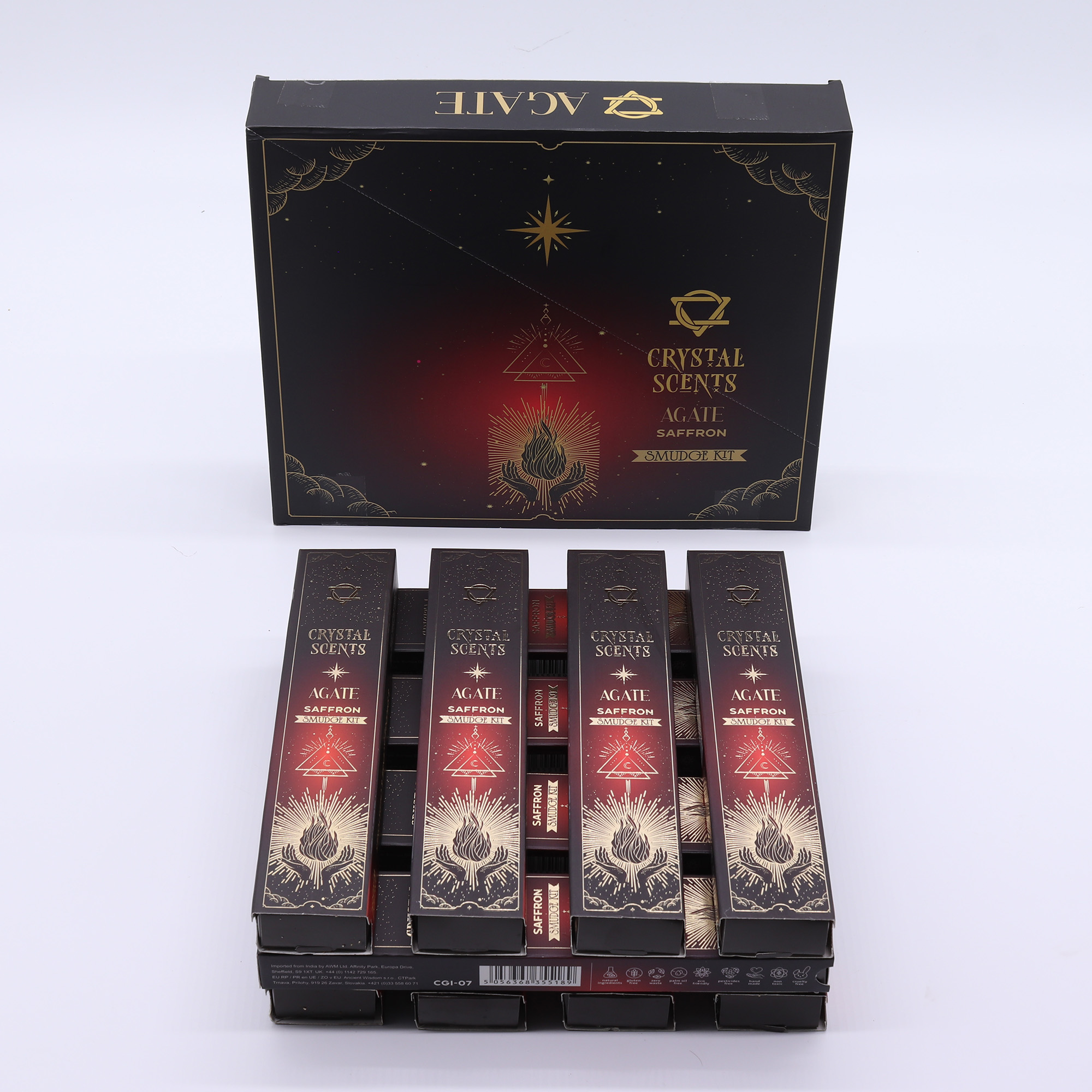 Fiecare pachet conține 10 bețișoare parfumate realizate manual și un cristal autentic de Agat Roșu, ceea ce îi conferă un potențial excelent pentru cadouri și o atractivitate largă în retail. Parfumul său bogat și cald îl face potrivit atât pentru ritualuri zilnice de centrare, cât și pentru display-uri sezoniere.