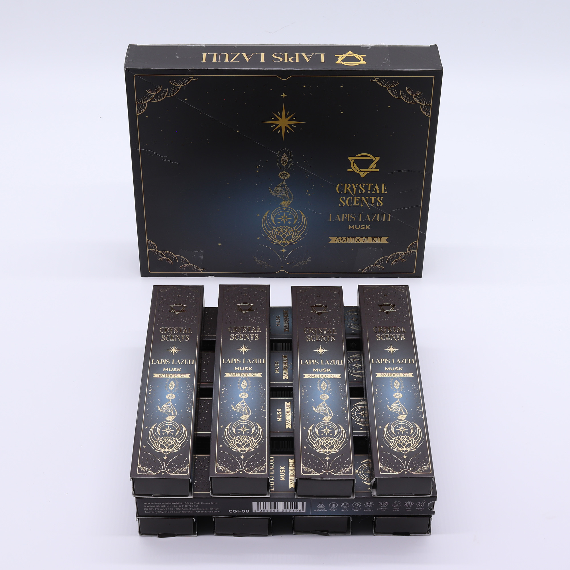 Fiecare pachet conține 10 bețișoare parfumate realizate manual și un cristal autentic de Lapis Lazuli, fiind o alegere excelentă pentru comercianții orientați spre practici mindfulness, produse pentru studiu sau inspirație creativă. Combinația are un aer sofisticat și este potrivită pentru clienții care caută un ritual introspectiv și atent.