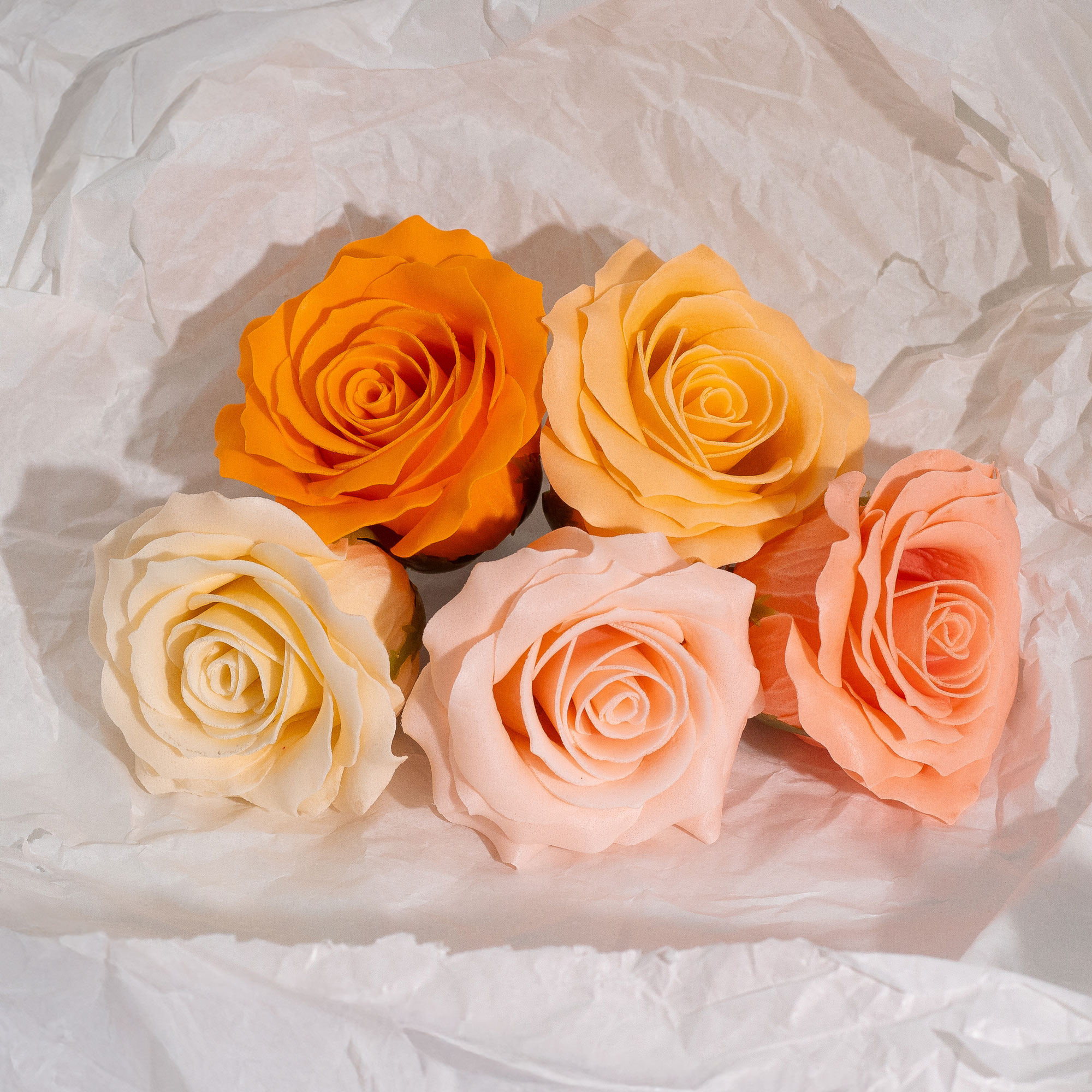 Acești trandafiri versatili sunt perfecți pentru coșuri sezoniere, seturi cadou de răsfăț sau buchete personalizate. Tonurile calde îi fac potriviți pentru promoțiile de primăvară și vară, iar aroma lor discretă adaugă un plus de prospețime aranjamentelor sau băilor. Pot fi folosiți decorativ sau ca săpunuri blânde pentru mâini, oferind atât farmec, cât și utilitate.