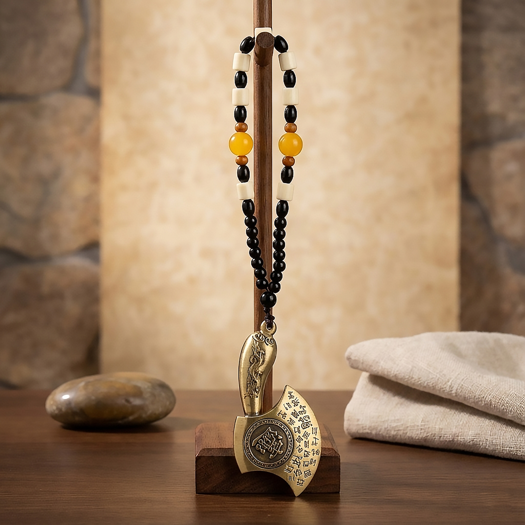 Această Secure Ceremonială Feng Shui suspendabilă se bazează pe simbolistica tradițională a securii, reprezentând autoritatea, protecția și păstrarea prosperității. În practica Feng Shui, motivele cu secure simbolizează controlul asupra resurselor și protejarea bunăstării, nu forța sau conflictul. Piesa îmbină semnificația simbolică cu atractivitatea decorativă, fiind potrivită atât pentru spații spirituale, cât și pentru interioare cu accent pe design.