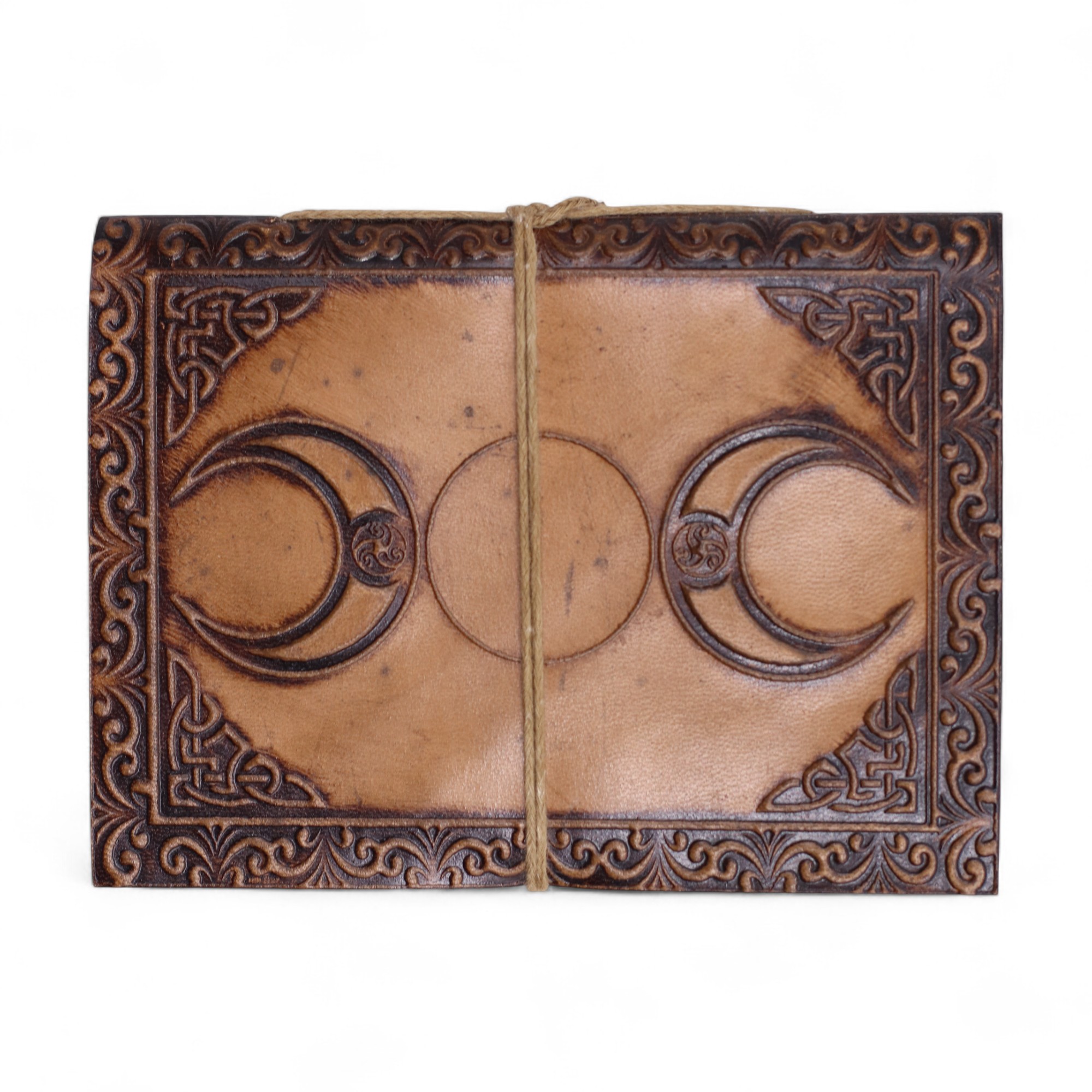 Fiecare agendă este lucrată manual din piele și decorată în relief cu simboluri mistice și ezoterice – de la motive cerești la semne alchimice ce evocă transformarea și creșterea spirituală. Rezultatul este un display care inspiră și atrage privirile.