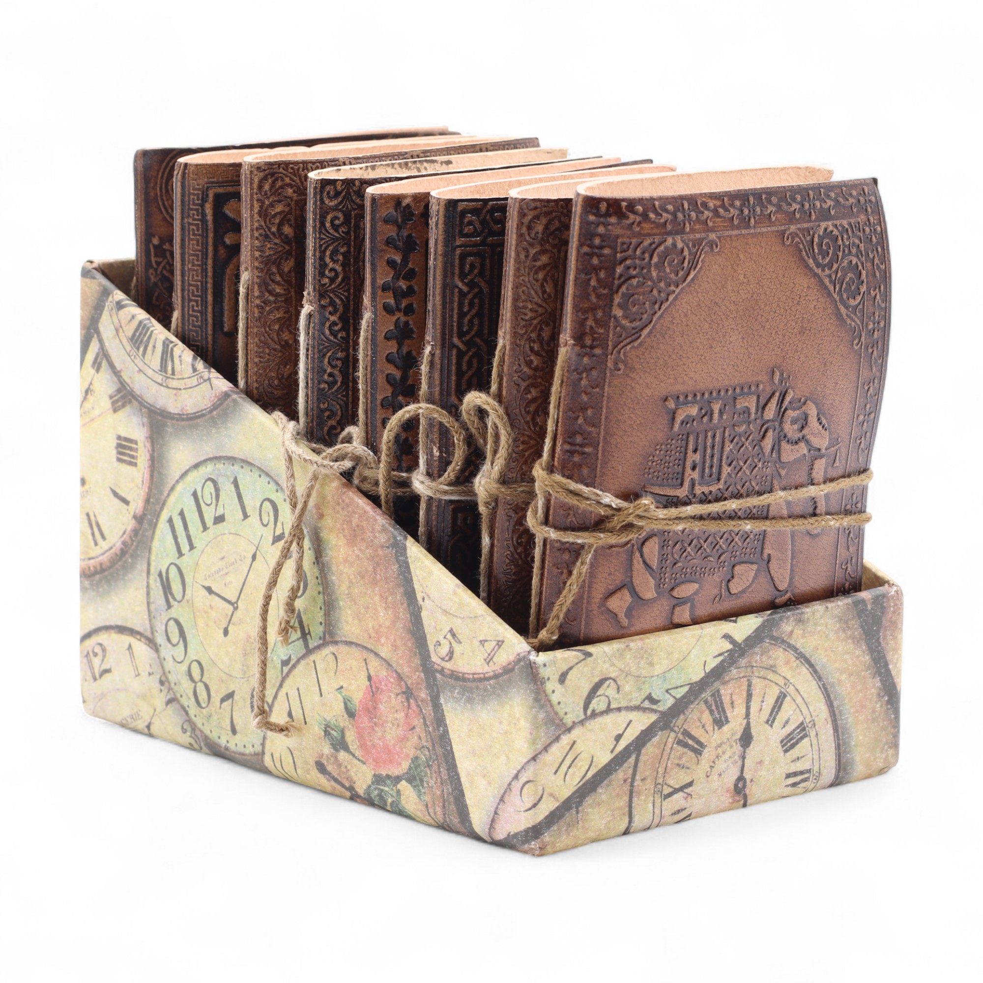 Acest set versatil reunește opt agende din piele, frumos lucrate manual, într-un format compact de 5x3,5”.