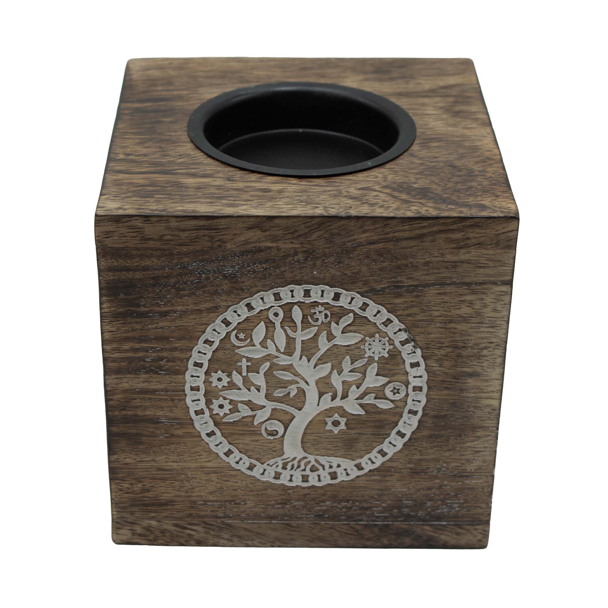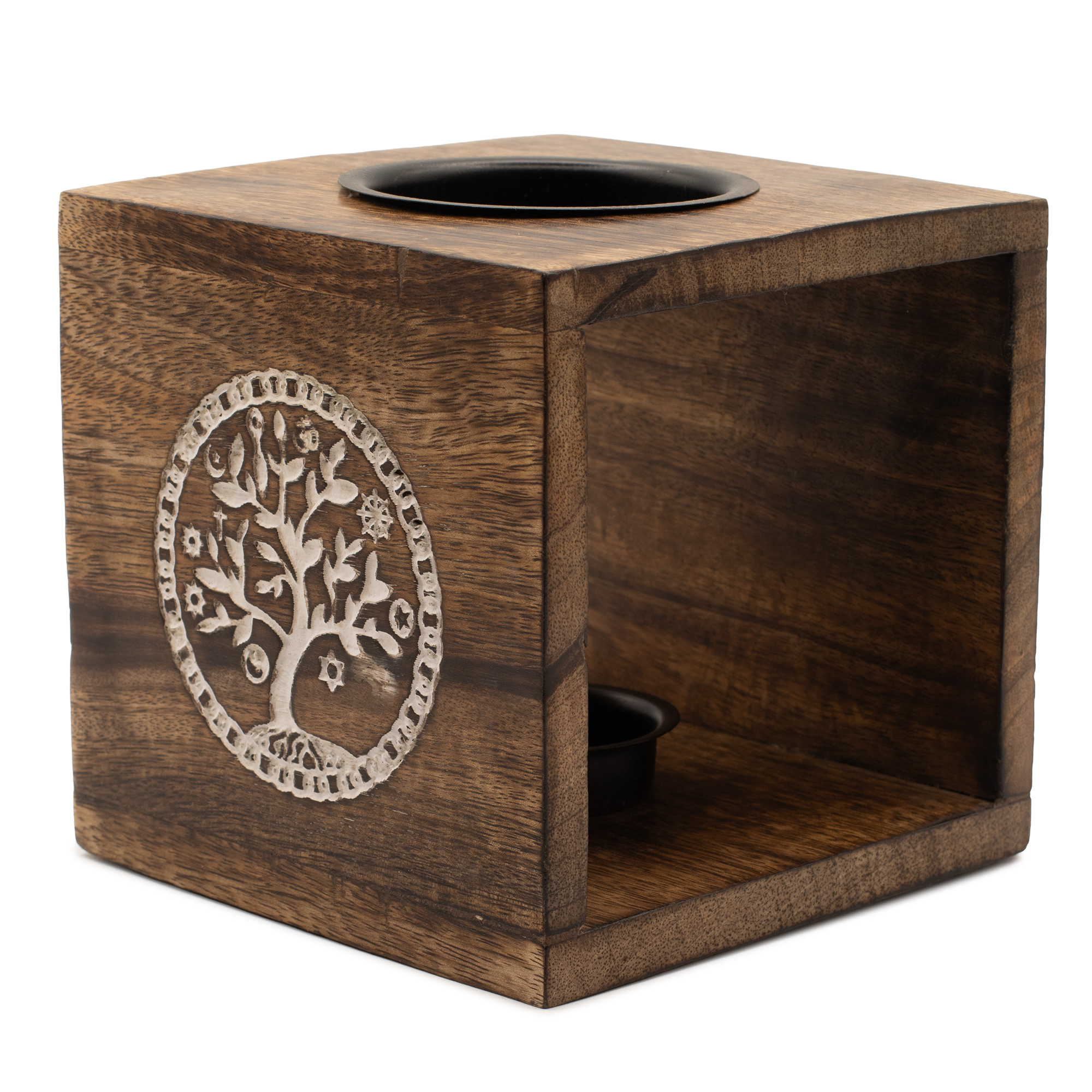 Având designul Arborelui Vieţii, acest arzător mare, pătrat, pentru uleiuri simbolizează creşterea, conexiunea şi continuitatea. Realizat din lemn de mango, fiecare piesă prezintă variaţii naturale care îi conferă caracter şi căldură.
