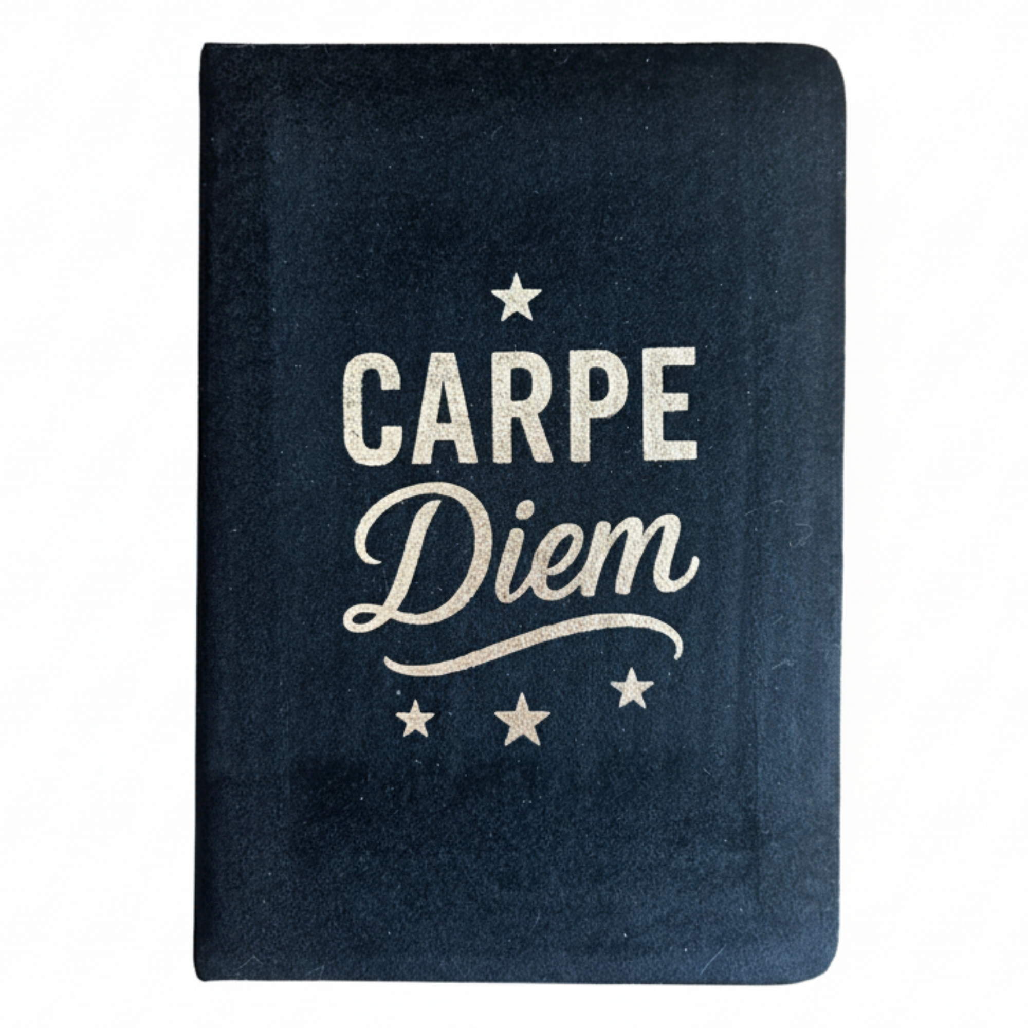 Adăugați un strop de eleganță și sens gamei dvs. de papetărie cu Agenda de Catifea Carpe Diem în nuanță rafinată de negru. Coperta moale din catifea, embosată cu mesajul inspirațional Carpe Diem, îl transformă într-o alegere perfectă pentru clienții care apreciază atât designul, cât și semnificația.