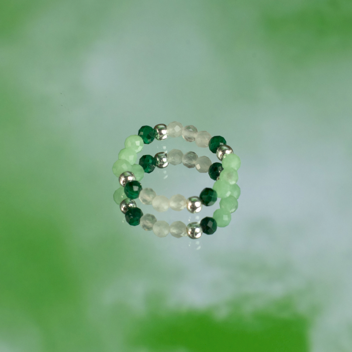 Fiecare piatră aduce o energie distinctă. Malachitul adaugă profunzime și modele naturale expresive, Cuarțul Roz introduce căldură și finețe, iar Aventurinul completează setul cu o energie ușoară și pământie. Inelele pot fi purtate suprapuse, pentru un efect organic și stratificat, sau individual, pentru un stil mai curat și minimalist.