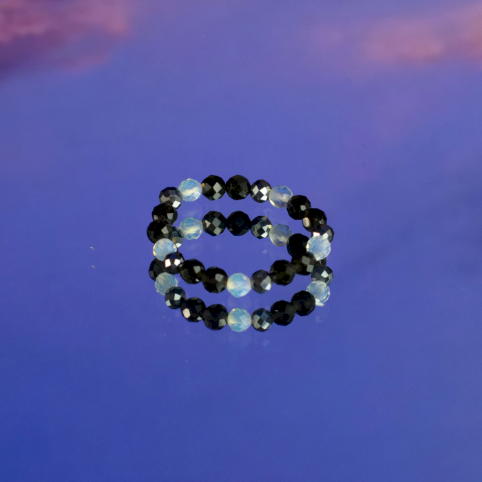Setul de Inele Lună Plină se inspiră din cerurile luminate de lună și din ritualurile liniștite ale nopții. Combinând Piatra Lunii, Obsidian Negru și Ametist, setul creează o paletă cromatică rece și mistică, cu o atmosferă calmă, introspectivă și rafinată.