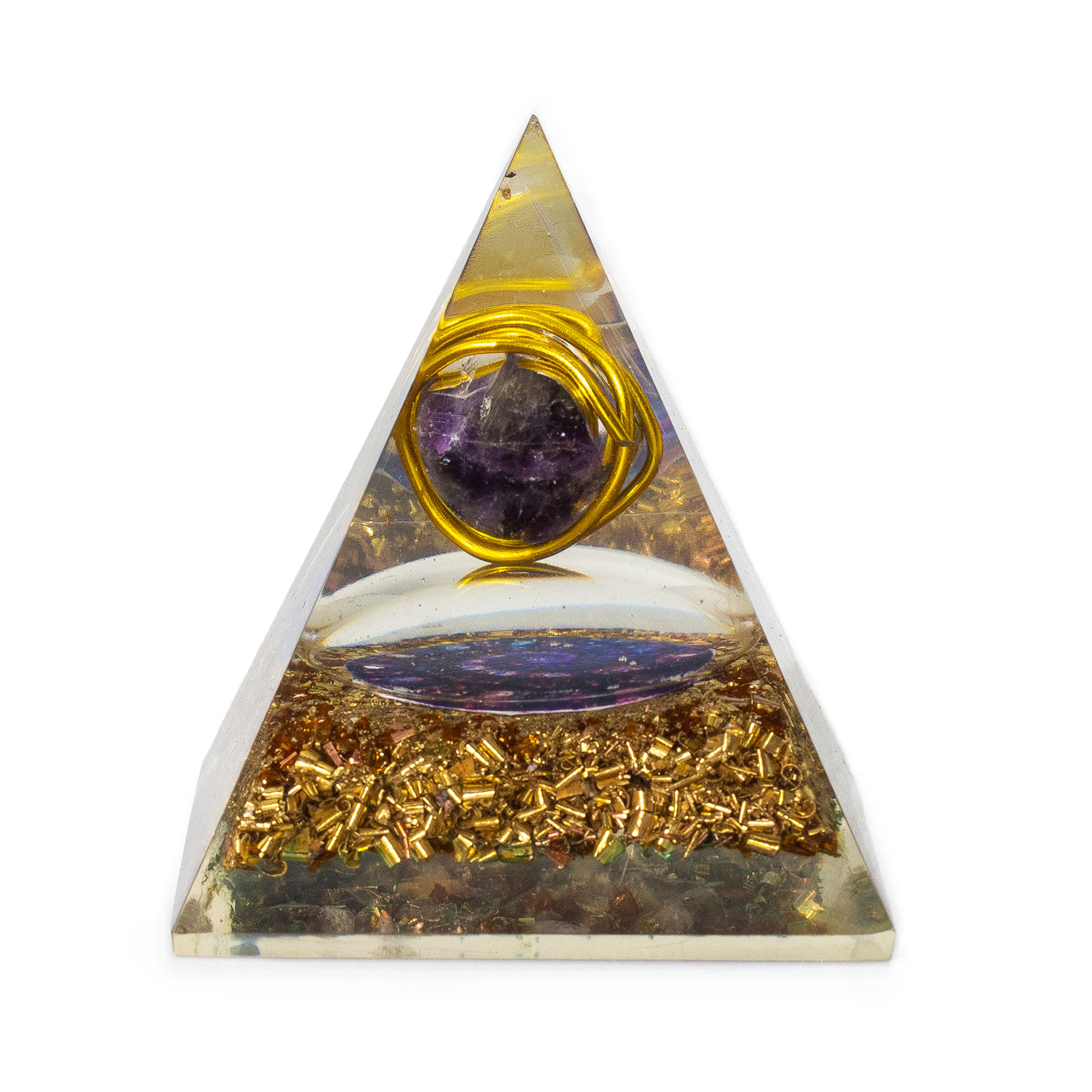 Orgonitul este apreciat ca instrument spiritual pentru vindecare și purificare energetică, despre care se crede că ajută la neutralizarea poluării electromagnetice și favorizează calmul emoțional și claritatea mentală. Ametistul, recunoscut pentru proprietățile sale liniștitoare și protectoare, face ca această piramidă să fie deosebit de potrivită pentru spațiile de meditație, dormitoare sau zone dedicate stării de bine.