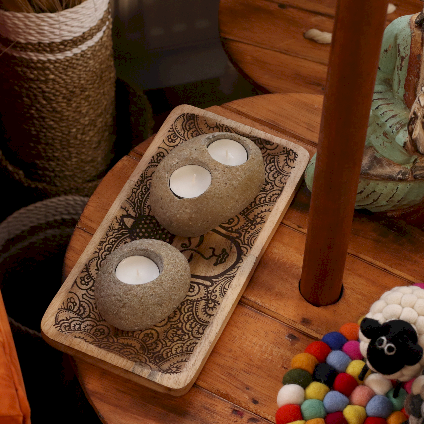 Adăugați o notă autentică de natură colecției dvs. de produse cu aceste Suporturi din Piatră de Râu pentru Lumânări Tip Pastilă, realizate manual în Indonezia.