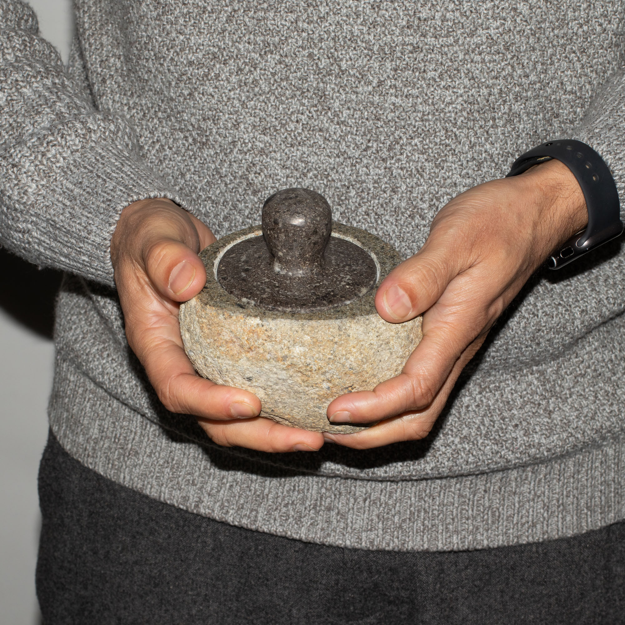 Acest Vas de Împământare Mediu este sculptat din piatră solidă de râu, păstrând greutatea naturală, textura şi forma organică a pietrei. Neted la interior şi lăsat brut la exterior, oferă o senzaţie sigură la atingere şi o prezenţă calmă şi stabilă pe orice suprafaţă.