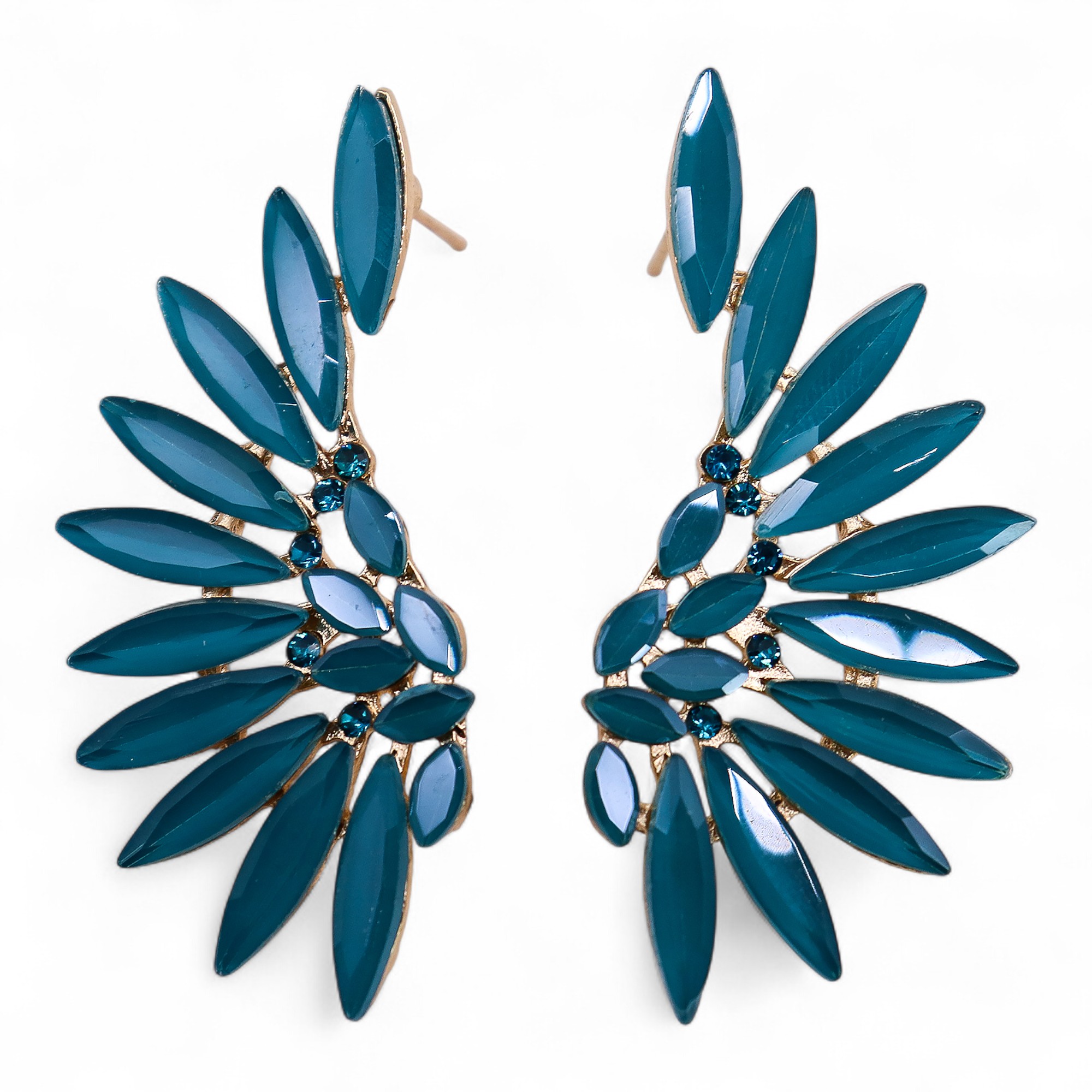Acești cercei Aripi de Înger prezintă accente din sticlă verde turcoaz, care prind lumina asemenea stropilor de ocean. Designul cu aripi simbolizează mișcarea și libertatea, oferind o piesă impresionantă, dar ușor de purtat. Ideali pentru comercianții care caută bijuterii elegante, expresive și pline de simbolism.