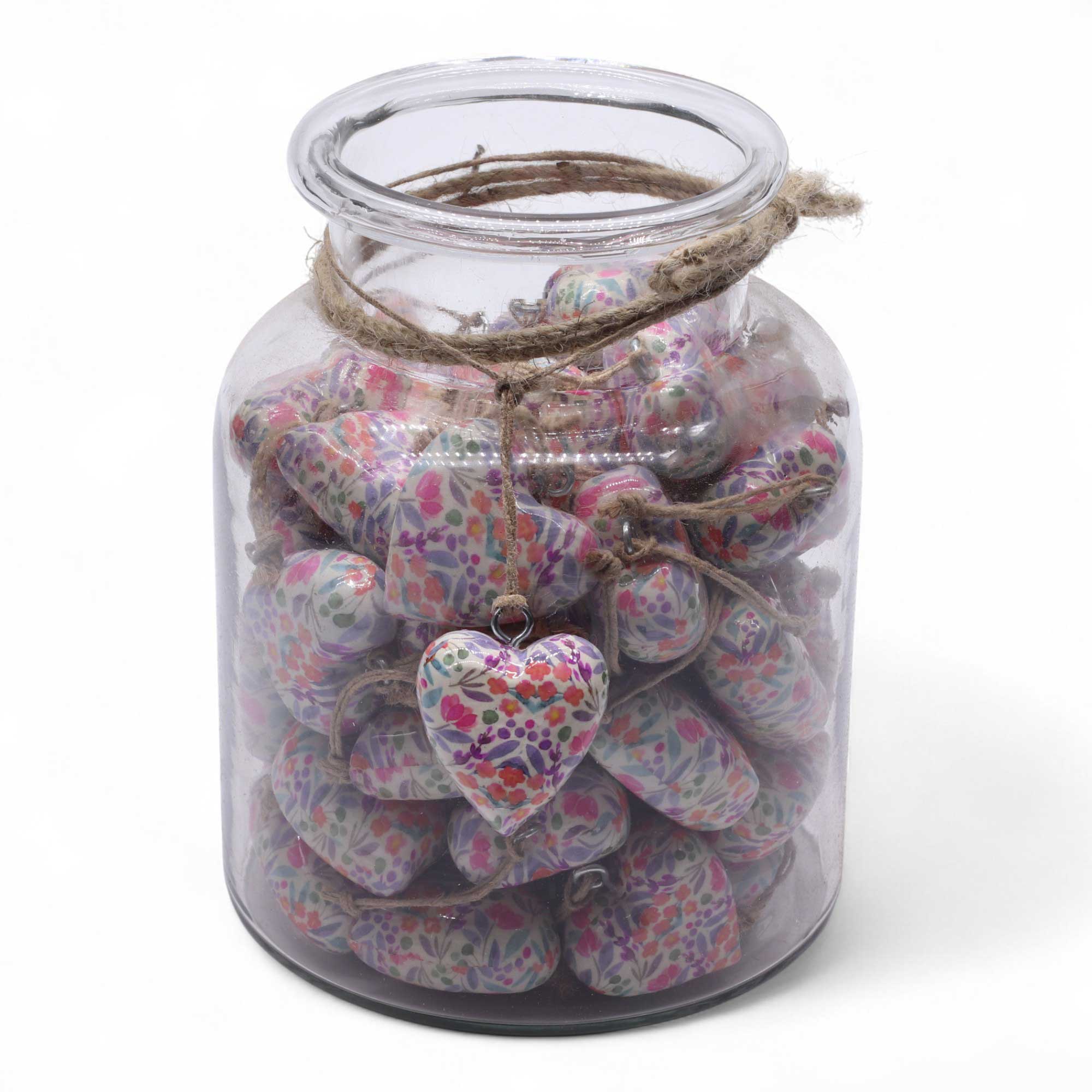 Aceste inimi sunt ideale ca decorațiuni pentru brad, accente festive pentru coronițe și ghirlande, sau ca mici simboluri pe care clienții le pot oferi celor dragi. Prezentate într-un borcan din sticlă reutilizabil, acesta poate fi ușor refolosit pentru depozitarea obiectelor mici, crearea unei piese decorative sau adăugarea unui accent vizual pe tejghea.